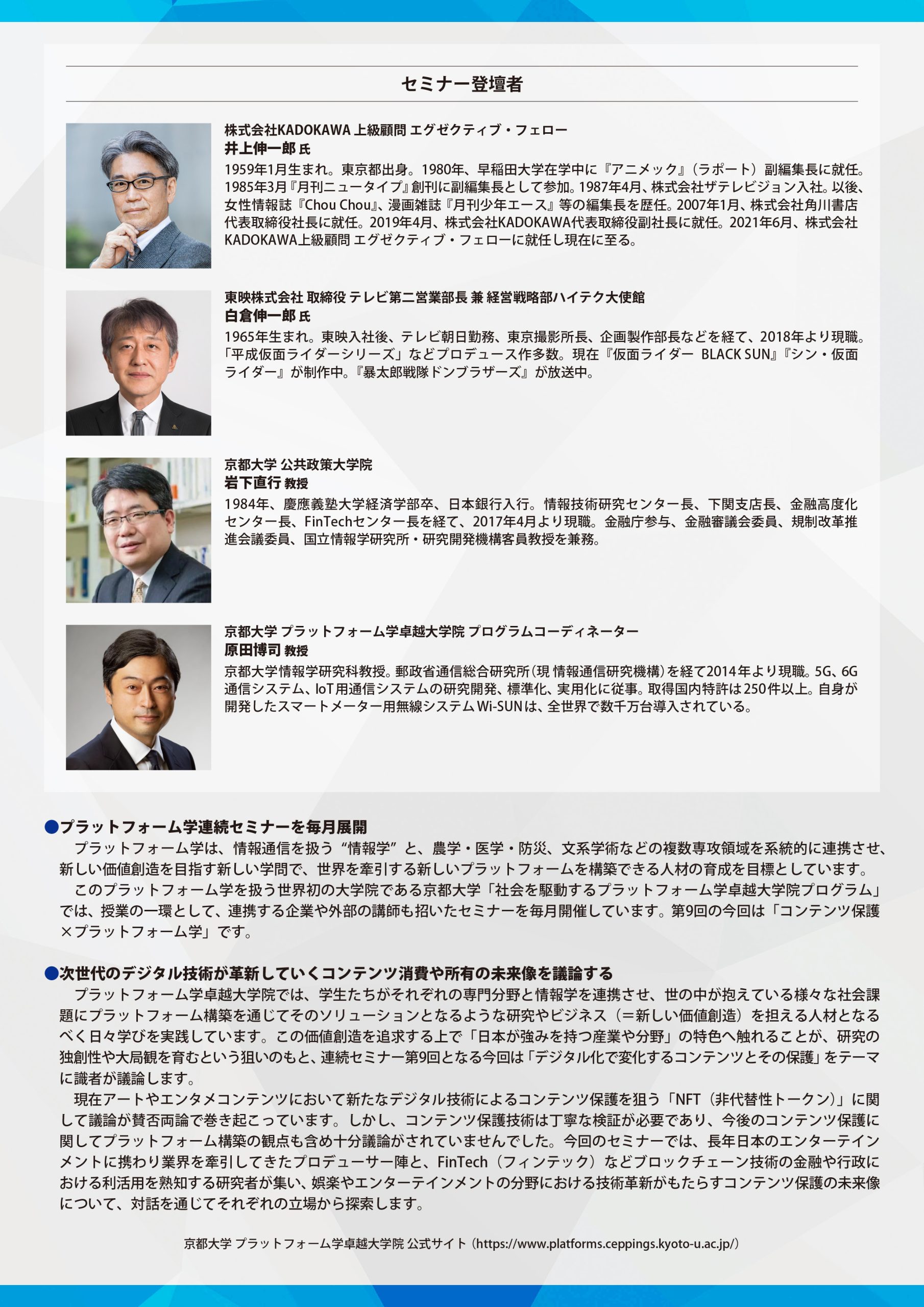 第9回となる今回は、新たなデジタル技術によるコンテンツ保護に関しての現状と、その未来像をプラットフォーム学的に議論します。